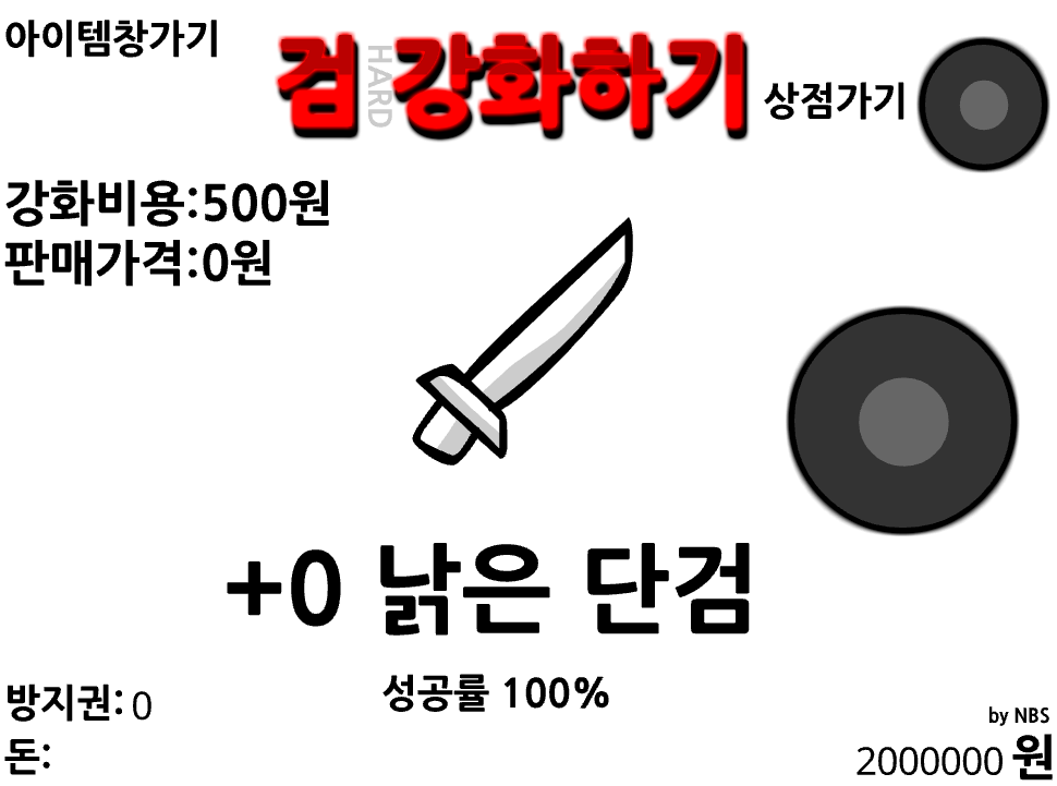 이 게임은 강화 시스템을 중심으로 진행되는 간단한 게임입니다.