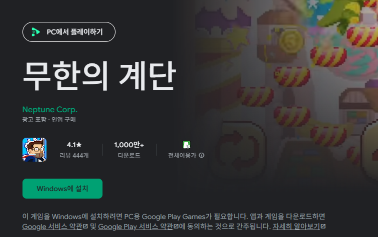 1. 아래 링크를 통해 구글 플레이 게임즈의 무한의계단 상세 페이지로 접속합니다.