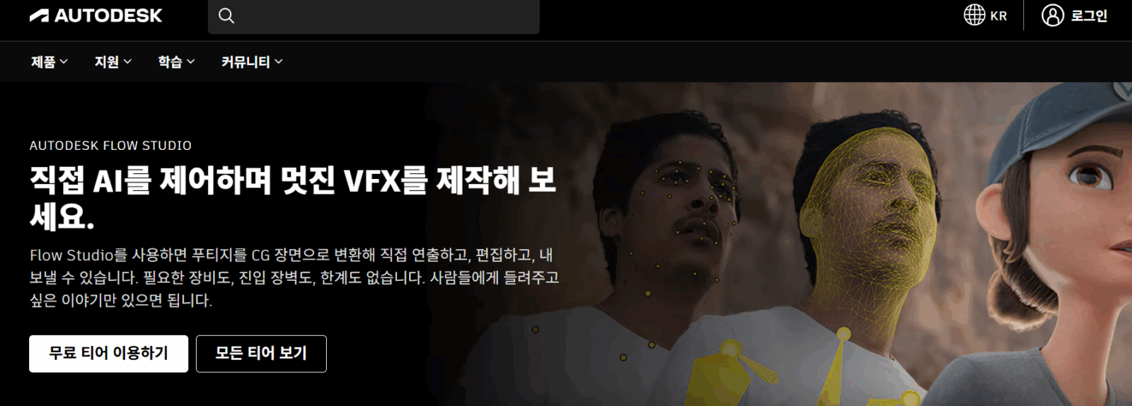 • 오토데스크 공식 웹사이트 방문: 오토데스크 웹사이트 (https://www.autodesk.co.kr/)에 접속합니다.