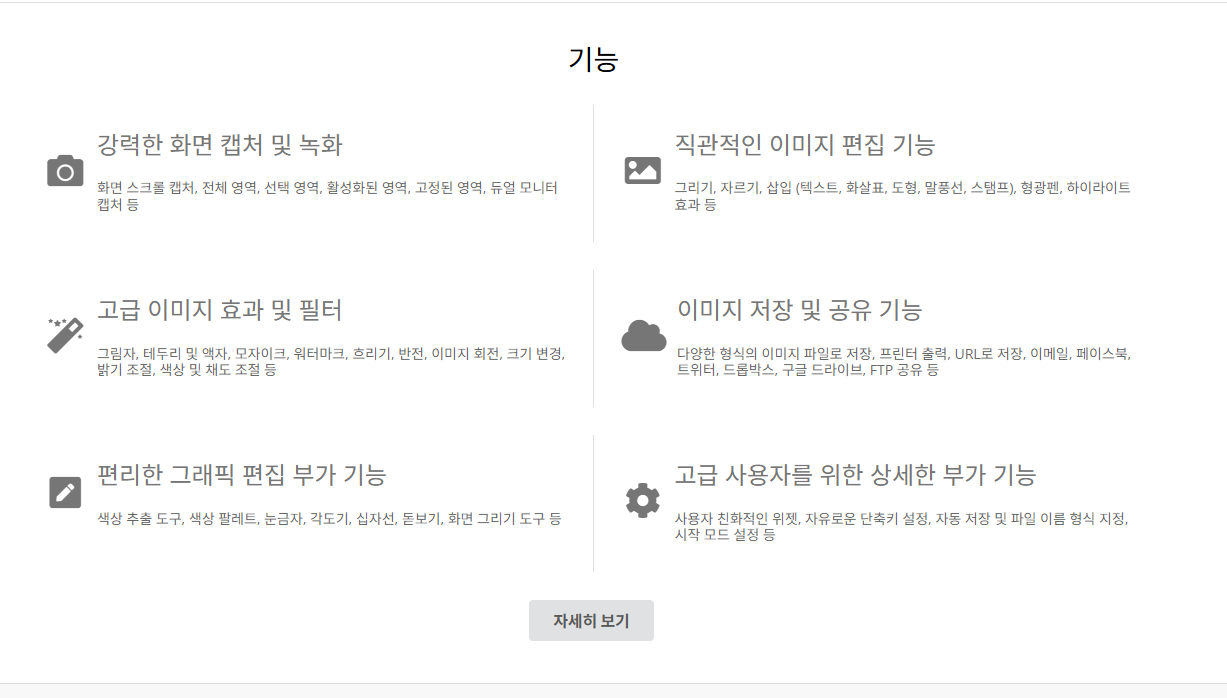 무료로 제공되는 강력한 기능: 화면 캡쳐, 이미지 편집, 색상 추출, 눈금자 등 다양한 기능을 무료로 사용할 수 있습니다. 유료 소프트웨어에 버금가는 기능을 제공하면서도 무료라는 점이 가장 큰 장점입니다.