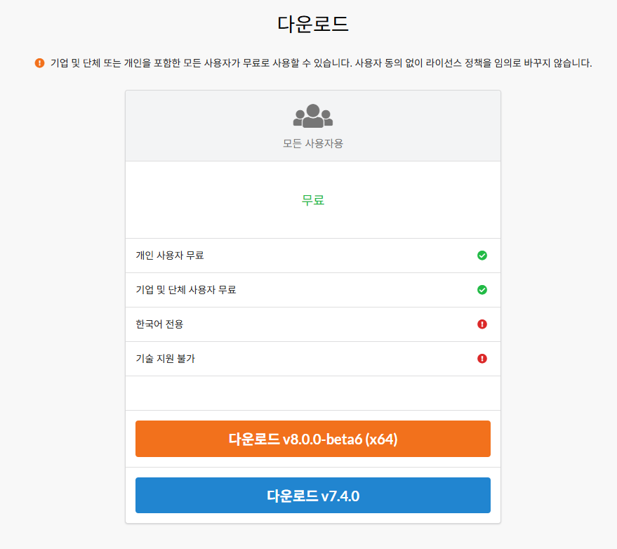 기업 사용 시 라이선스 필요: 개인 사용자는 무료로 사용할 수 있지만, 기업 또는 상업적 용도로 사용하는 경우 라이선스를 구매해야 합니다. 라이선스 비용이 부담스러울 수 있습니다.